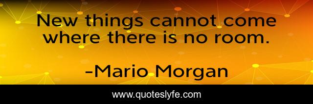 This page presents the quote "New things cannot come where there is no room.". Author of this quote is Mario Morgan. This quote is about positive, confidence, creating, change,.