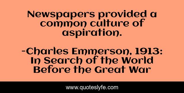 "Charles Emmerson, 1913: In Search of the World Before the Great War Quotes." Quoteslyfe.com, 2025. Fri. 05 Dec. 2025. <https://www.quoteslyfe.com/quote/Newspapers-provided-a-common-culture-of-aspiration-233635>.
