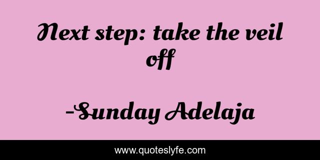 This page presents the quote "Next step: take the veil off". Author of this quote is Sunday Adelaja. This quote is about vision, unveil,.