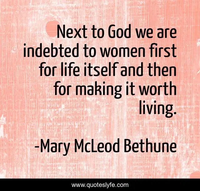 This page presents the quote "Next to God we are indebted to women first for life itself and then for making it worth living.". Author of this quote is Mary McLeod Bethune. This quote is about self, acceptance,.