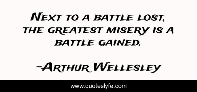 This page presents the quote "Next to a battle lost, the greatest misery is a battle gained.". Author of this quote is Arthur Wellesley. .