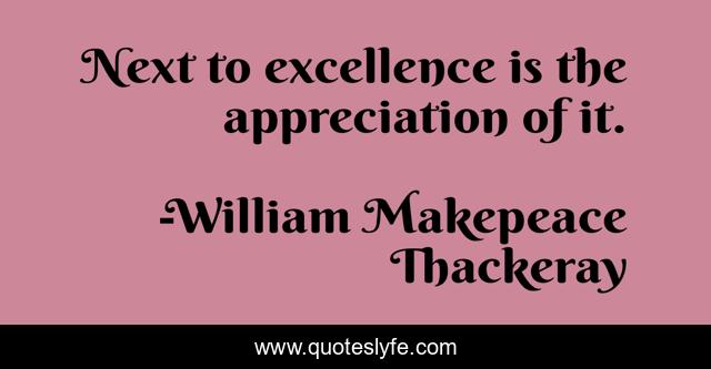 This page presents the quote "Next to excellence is the appreciation of it.". Author of this quote is William Makepeace Thackeray. This quote is about appreciation, excellence,.