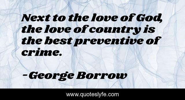 This page presents the quote "Next to the love of God, the love of country is the best preventive of crime.". Author of this quote is George Borrow. This quote is about god, love, best, affection,.