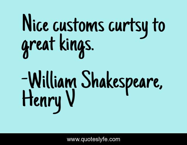 "William Shakespeare, Henry V Quotes." Quoteslyfe.com, 2025. Mon. 08 Dec. 2025. <https://www.quoteslyfe.com/quote/Nice-customs-curtsy-to-great-kings-256110>.