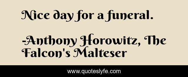 "Anthony Horowitz, The Falcon's Malteser Quotes." Quoteslyfe.com, 2025. Mon. 08 Dec. 2025. <https://www.quoteslyfe.com/quote/Nice-day-for-a-funeral-145954>.