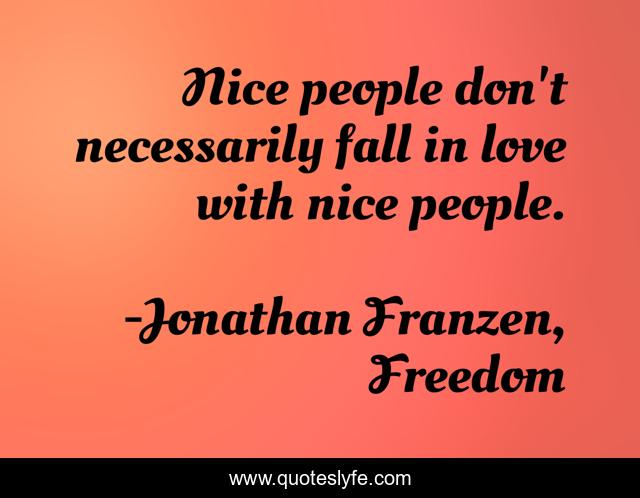 "Jonathan Franzen, Freedom Quotes." Quoteslyfe.com, 2025. Fri. 05 Dec. 2025. <https://www.quoteslyfe.com/quote/Nice-people-don-t-necessarily-fall-in-76492>.