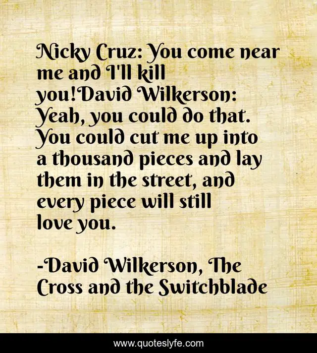 "David Wilkerson, The Cross and the Switchblade Quotes." Quoteslyfe.com, 2025. Mon. 08 Dec. 2025. <https://www.quoteslyfe.com/quote/Nicky-Cruz-You-come-near-me-and-281182>.