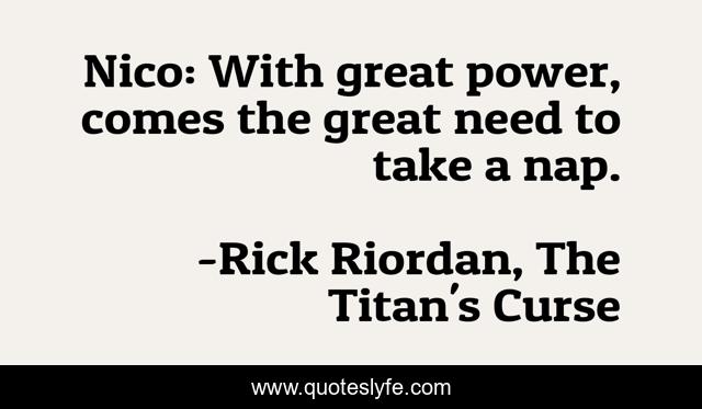This page presents the quote "Nico: With great power, comes the great need to take a nap.". Author of this quote is Rick Riordan, The Titan's Curse. This quote is about humor, percy-jackson,.
