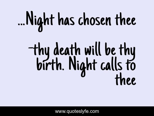 This page presents the quote "...Night has chosen thee". Author of this quote is thy death will be thy birth. Night calls to thee. .
