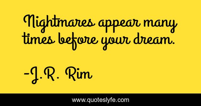 "J.R. Rim Quotes." Quoteslyfe.com, 2025. Mon. 08 Dec. 2025. <https://www.quoteslyfe.com/quote/Nightmares-appear-many-times-before-your-dream-130959>.