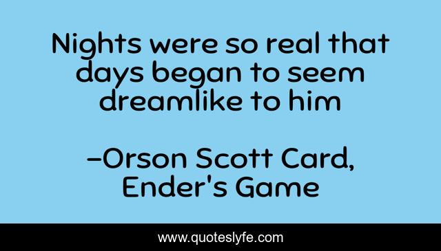 "Orson Scott Card, Ender's Game Quotes." Quoteslyfe.com, 2025. Fri. 05 Dec. 2025. <https://www.quoteslyfe.com/quote/Nights-were-so-real-that-days-began-230878>.