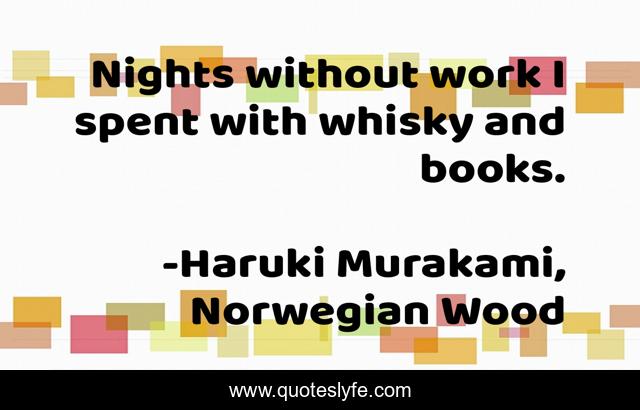 "Haruki Murakami, Norwegian Wood Quotes." Quoteslyfe.com, 2025. Sat. 06 Dec. 2025. <https://www.quoteslyfe.com/quote/Nights-without-work-I-spent-with-whisky-124889>.