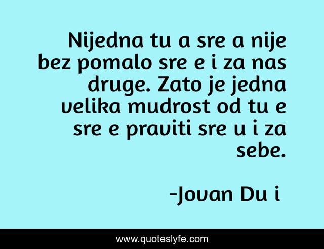 "Jovan Dučić Quotes." Quoteslyfe.com, 2025. Fri. 05 Dec. 2025. <https://www.quoteslyfe.com/quote/Nijedna-tu-a-sre-a-nije-bez-16844>.