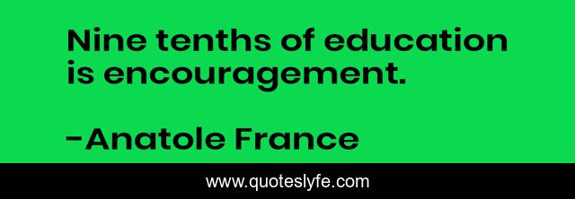This page presents the quote "Nine tenths of education is encouragement.". Author of this quote is Anatole France. This quote is about nine, encouragement,.