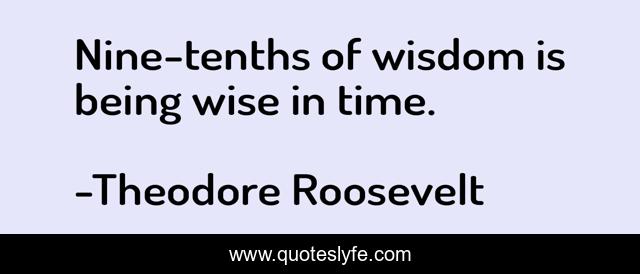 This page presents the quote "Nine-tenths of wisdom is being wise in time.". Author of this quote is Theodore Roosevelt. This quote is about being, wise, time,.