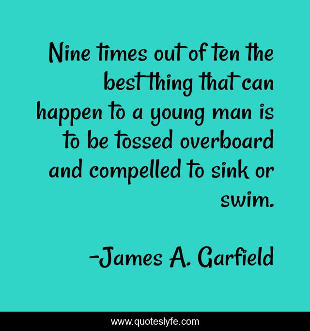 This page presents the quote "Nine times out of ten the best thing that can happen to a young man is to be tossed overboard and compelled to sink or swim.". Author of this quote is James A. Garfield. .
