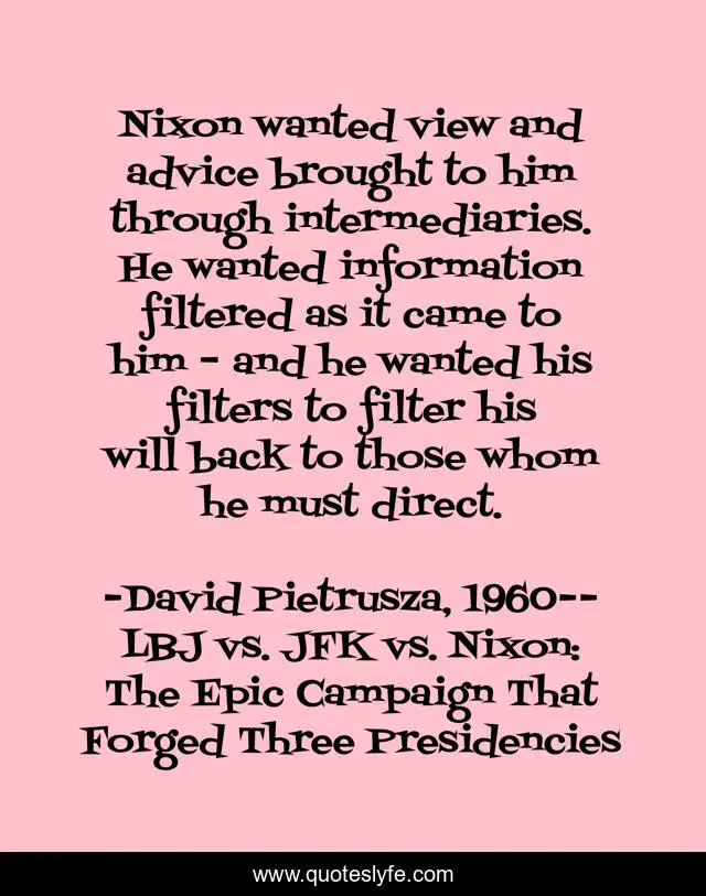 "David Pietrusza, 1960--LBJ vs. JFK vs. Nixon: The Epic Campaign That Forged Three Presidencies Quotes." Quoteslyfe.com, 2025. Mon. 08 Dec. 2025. <https://www.quoteslyfe.com/quote/Nixon-wanted-view-and-advice-brought-to-64747>.