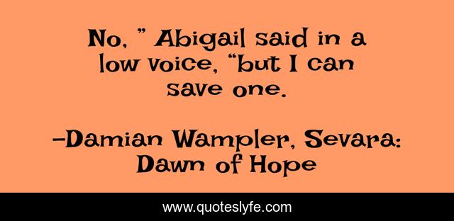 This page presents the quote "No, ” Abigail said in a low voice, “but I can save one.". Author of this quote is Damian Wampler, Sevara: Dawn of Hope. .
