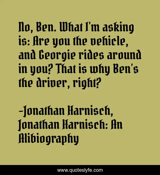 "Jonathan Harnisch, Jonathan Harnisch: An Alibiography Quotes." Quoteslyfe.com, 2025. Sat. 06 Dec. 2025. <https://www.quoteslyfe.com/quote/No-Ben-What-I-m-asking-is-87526>.