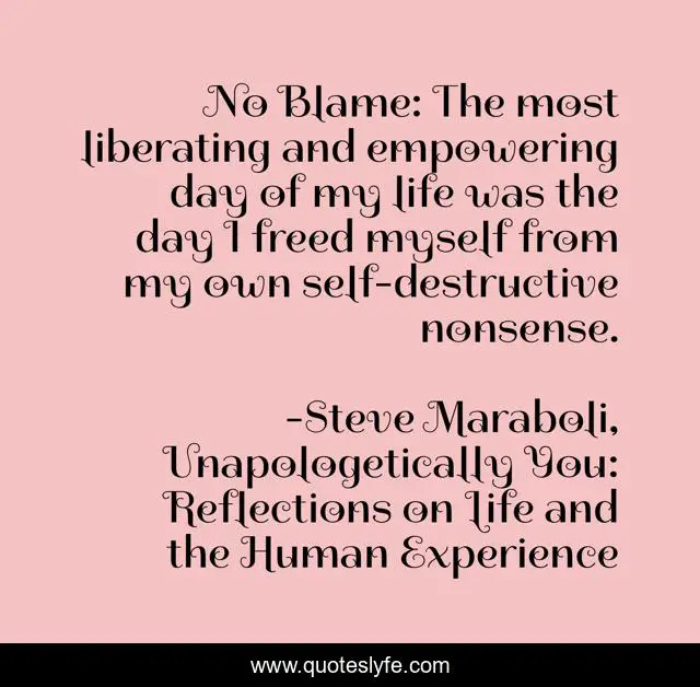 "Steve Maraboli, Unapologetically You: Reflections on Life and the Human Experience Quotes." Quoteslyfe.com, 2025. Mon. 08 Dec. 2025. <https://www.quoteslyfe.com/quote/No-Blame-The-most-liberating-and-empowering-280150>.