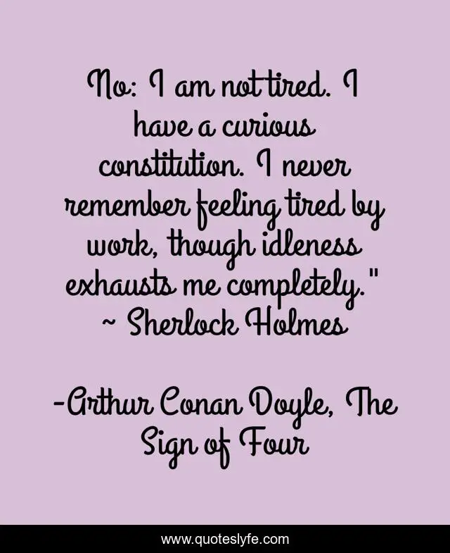 "Arthur Conan Doyle, The Sign of Four Quotes." Quoteslyfe.com, 2025. Fri. 05 Dec. 2025. <https://www.quoteslyfe.com/quote/No-I-am-not-tired-I-have-145965>.