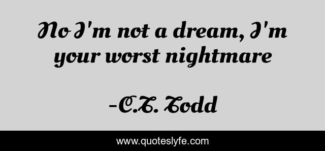 This page presents the quote "No I'm not a dream, I'm your worst nightmare". Author of this quote is C.T. Todd. This quote is about drama, action-adventure, horror, romance, vampire,.
