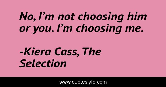 "Kiera Cass, The Selection Quotes." Quoteslyfe.com, 2025. Mon. 08 Dec. 2025. <https://www.quoteslyfe.com/quote/No-I-m-not-choosing-him-or-191583>.