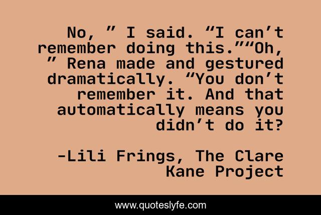 "Lili Frings, The Clare Kane Project Quotes." Quoteslyfe.com, 2025. Fri. 05 Dec. 2025. <https://www.quoteslyfe.com/quote/No-I-said-I-can-t-remember-101271>.