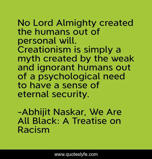 "Abhijit Naskar, We Are All Black: A Treatise on Racism Quotes." Quoteslyfe.com, 2025. Tue. 09 Dec. 2025. <https://www.quoteslyfe.com/quote/No-Lord-Almighty-created-the-humans-out-42371>.