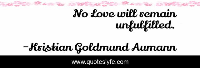 "Kristian Goldmund Aumann Quotes." Quoteslyfe.com, 2025. Tue. 09 Dec. 2025. <https://www.quoteslyfe.com/quote/No-Love-will-remain-unfulfilled-209712>.