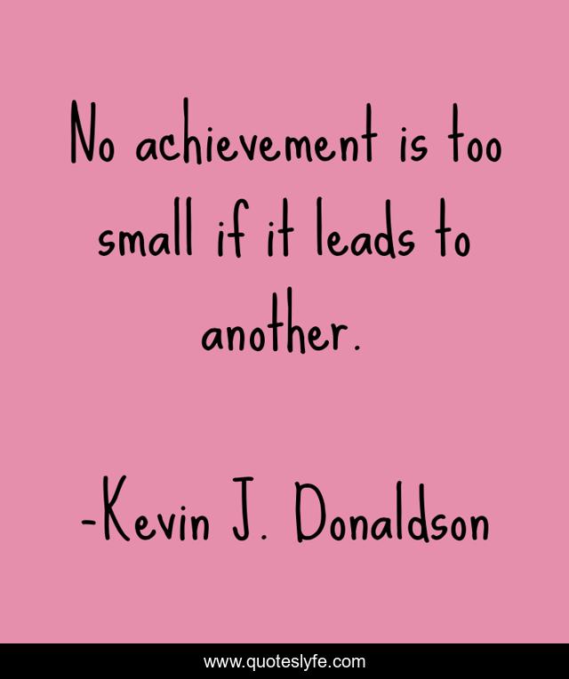 This page presents the quote "No achievement is too small if it leads to another.". Author of this quote is Kevin J. Donaldson. This quote is about achievement, never-give-up,.