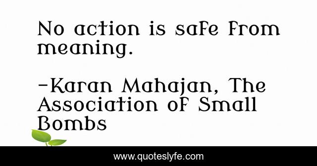 "Karan Mahajan, The Association of Small Bombs Quotes." Quoteslyfe.com, 2025. Mon. 08 Dec. 2025. <https://www.quoteslyfe.com/quote/No-action-is-safe-from-meaning-142265>.