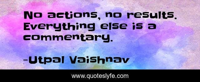 This page presents the quote "No actions, no results. Everything else is a commentary.". Author of this quote is Utpal Vaishnav. This quote is about confidence, positive, motivational, actions, optimistic, inspirational, enthusiasm,.