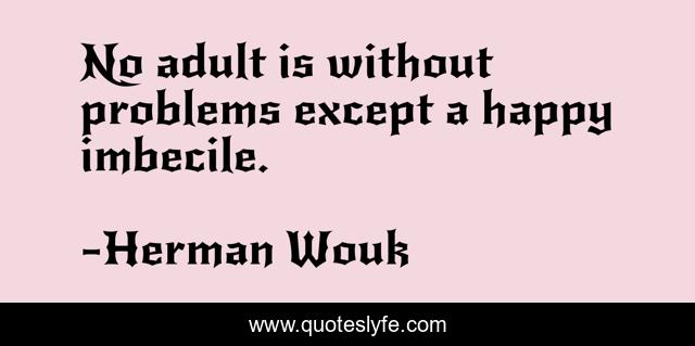 This page presents the quote "No adult is without problems except a happy imbecile.". Author of this quote is Herman Wouk. This quote is about happiness, problems, adults, imbeciles,.