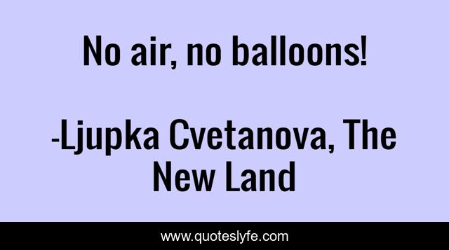 "Ljupka Cvetanova, The New Land Quotes." Quoteslyfe.com, 2025. Mon. 08 Dec. 2025. <https://www.quoteslyfe.com/quote/No-air-no-balloons-90061>.