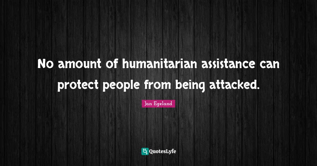This page presents the quote "No amount of humanitarian assistance can protect people from being attacked.". Author of this quote is Jan Egeland. This quote is about amount, assistance, humanitarian, people, protect,.