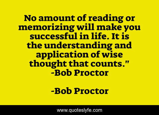No amount of reading or memorizing will make you successful in life. It is the understanding and application of wise thought that counts." -Bob Proctor