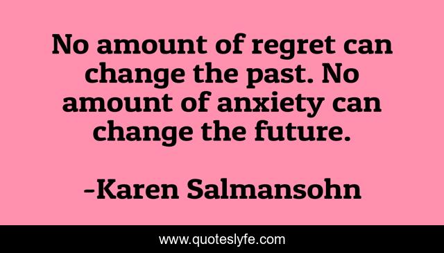 This page presents the quote "No amount of regret can change the past. No amount of anxiety can change the future.". Author of this quote is Karen Salmansohn. This quote is about faith, anxiety, let-it-go, staying-calm, change, worry,.