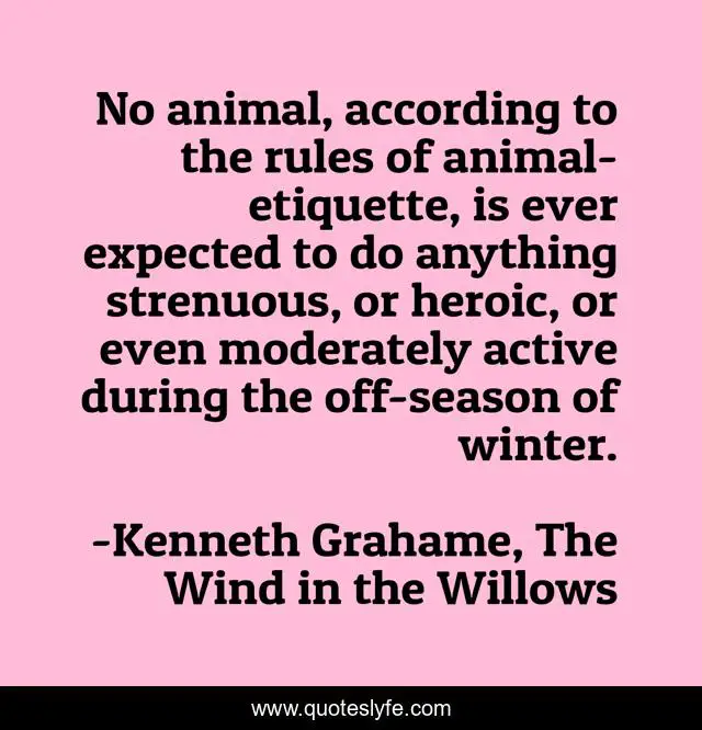 "Kenneth Grahame, The Wind in the Willows Quotes." Quoteslyfe.com, 2025. Tue. 09 Dec. 2025. <https://www.quoteslyfe.com/quote/No-animal-according-to-the-rules-of-242566>.