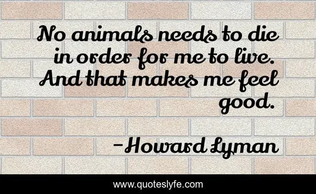 "Howard Lyman Quotes." Quoteslyfe.com, 2025. Sat. 06 Dec. 2025. <https://www.quoteslyfe.com/quote/No-animals-needs-to-die-in-order-135137>.