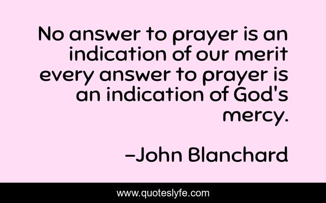 This page presents the quote "No answer to prayer is an indication of our merit every answer to prayer is an indication of God's mercy.". Author of this quote is John Blanchard. .