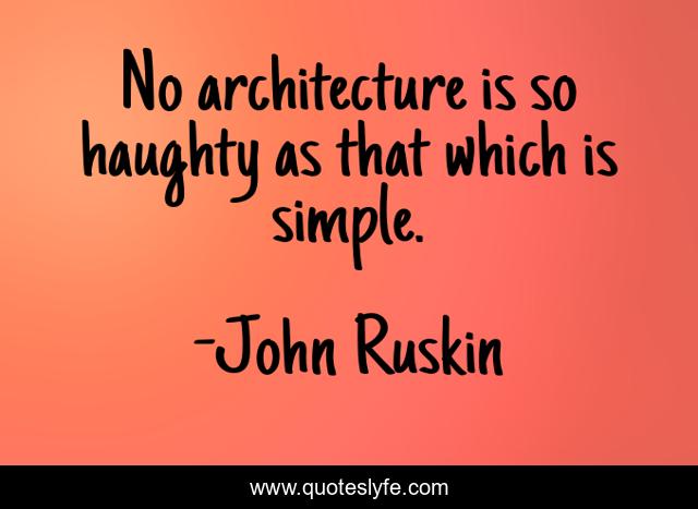 This page presents the quote "No architecture is so haughty as that which is simple.". Author of this quote is John Ruskin. This quote is about simple, haughty, which,.