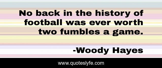 This page presents the quote "No back in the history of football was ever worth two fumbles a game.". Author of this quote is Woody Hayes. This quote is about game, football, back,.