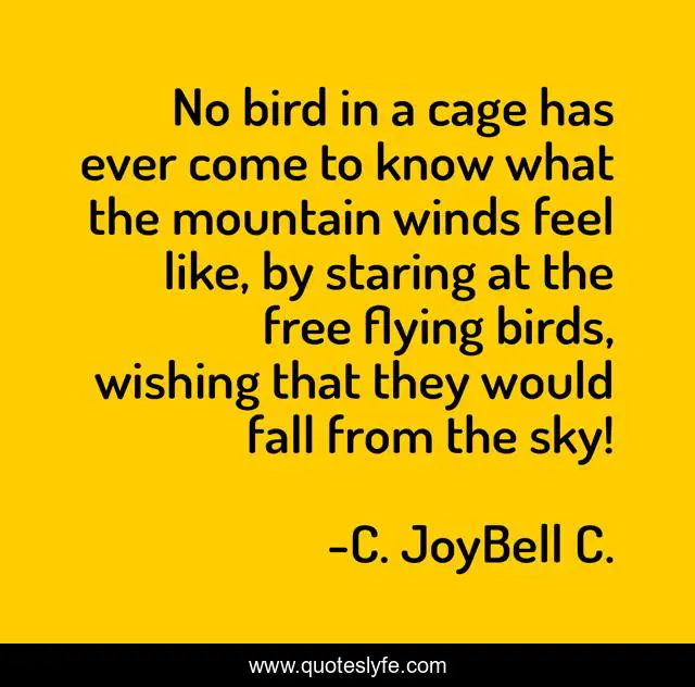 "C. JoyBell C. Quotes." Quoteslyfe.com, 2025. Mon. 08 Dec. 2025. <https://www.quoteslyfe.com/quote/No-bird-in-a-cage-has-ever-253786>.