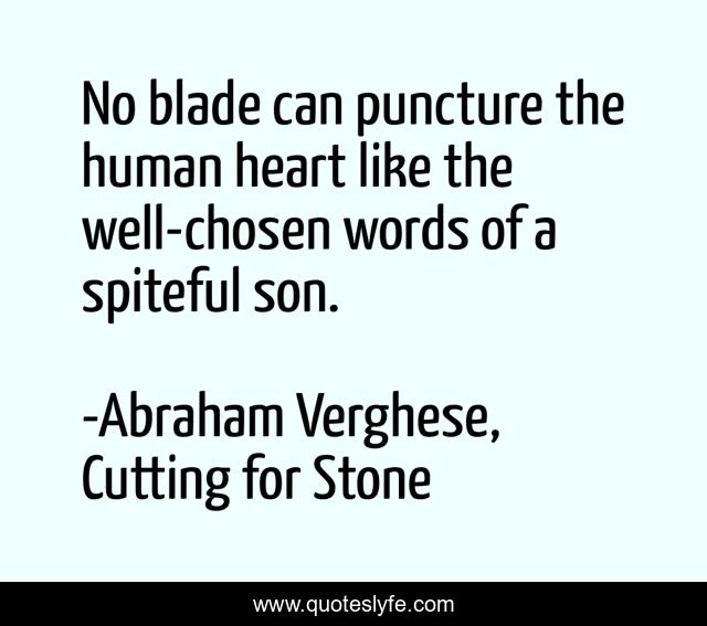 This page presents the quote "No blade can puncture the human heart like the well-chosen words of a spiteful son.". Author of this quote is Abraham Verghese, Cutting for Stone. .