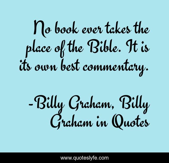 This page presents the quote "No book ever takes the place of the Bible. It is its own best commentary.". Author of this quote is Billy Graham, Billy Graham in Quotes. This quote is about bible, billy-graham,.
