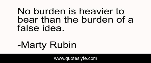 This page presents the quote "No burden is heavier to bear than the burden of a false idea.". Author of this quote is Marty Rubin. This quote is about lies, burdens, ideas,.