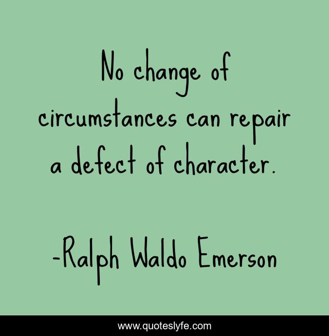This page presents the quote "No change of circumstances can repair a defect of character.". Author of this quote is Ralph Waldo Emerson. This quote is about character, circumstances,.
