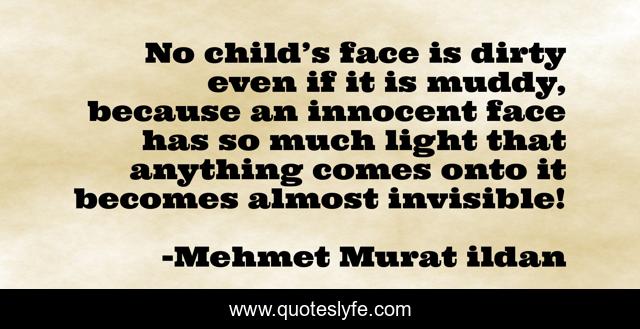 This page presents the quote "No child’s face is dirty even if it is muddy, because an innocent face has so much light that anything comes onto it becomes almost invisible!". Author of this quote is Mehmet Murat ildan. .