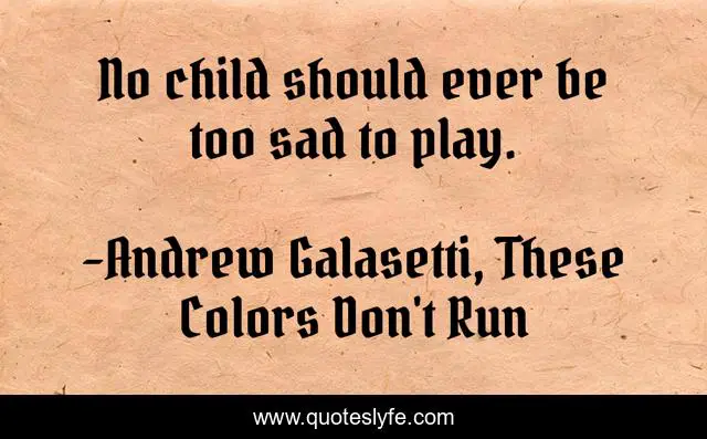 "Andrew Galasetti, These Colors Don't Run Quotes." Quoteslyfe.com, 2025. Fri. 05 Dec. 2025. <https://www.quoteslyfe.com/quote/No-child-should-ever-be-too-sad-16892>.